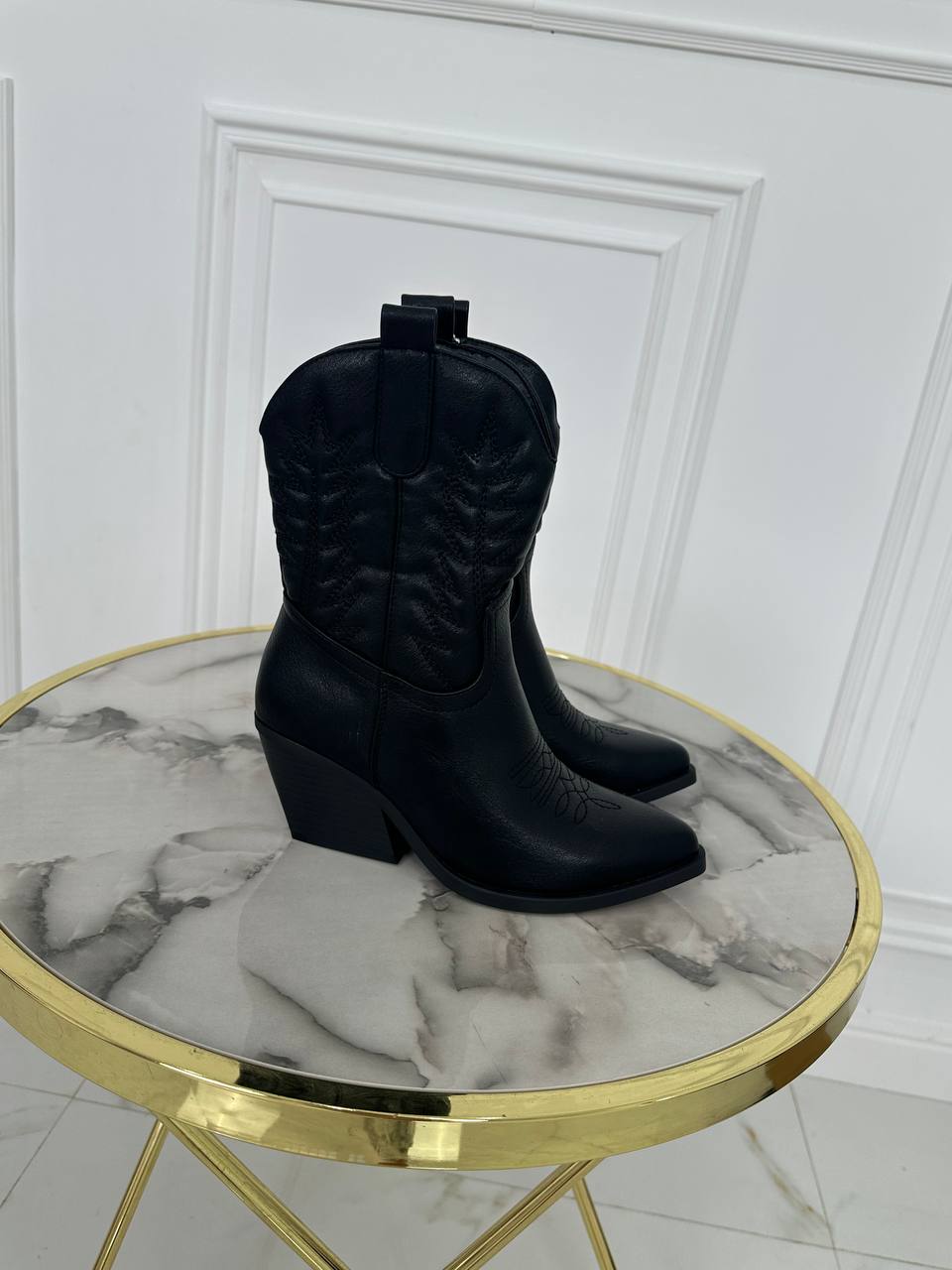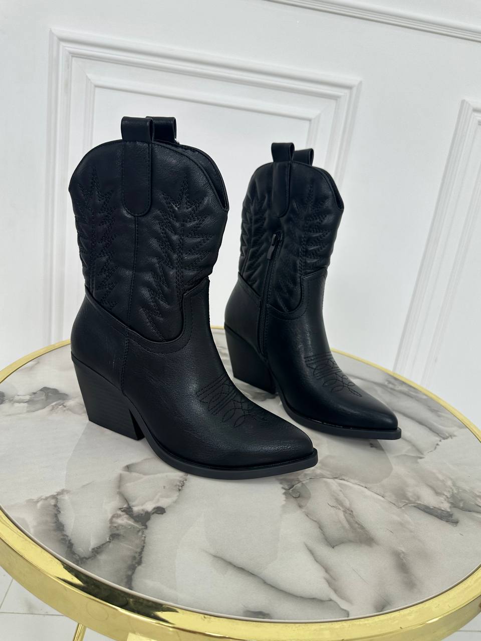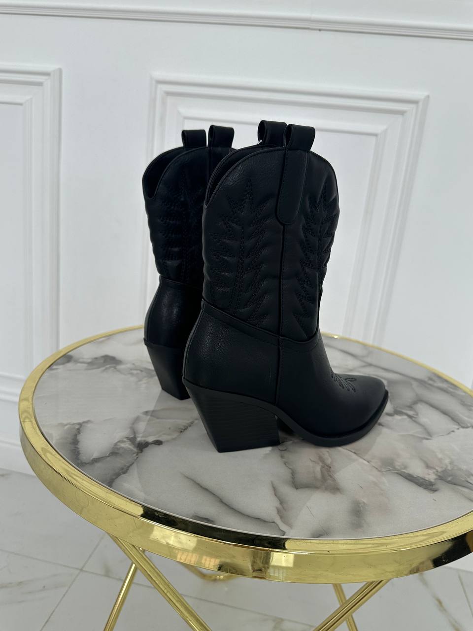 Texano in ecopelle con tacco largo alto 6,5 centimetri, arriva fino a metà gamba ha il gambale interamente disegnato