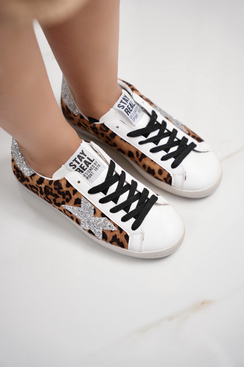 Scarpetta con tomaia in ecopelle decorata con stella laterale in strass e paillettes , chiusura con lacci e fondo in gomma di 2 cm