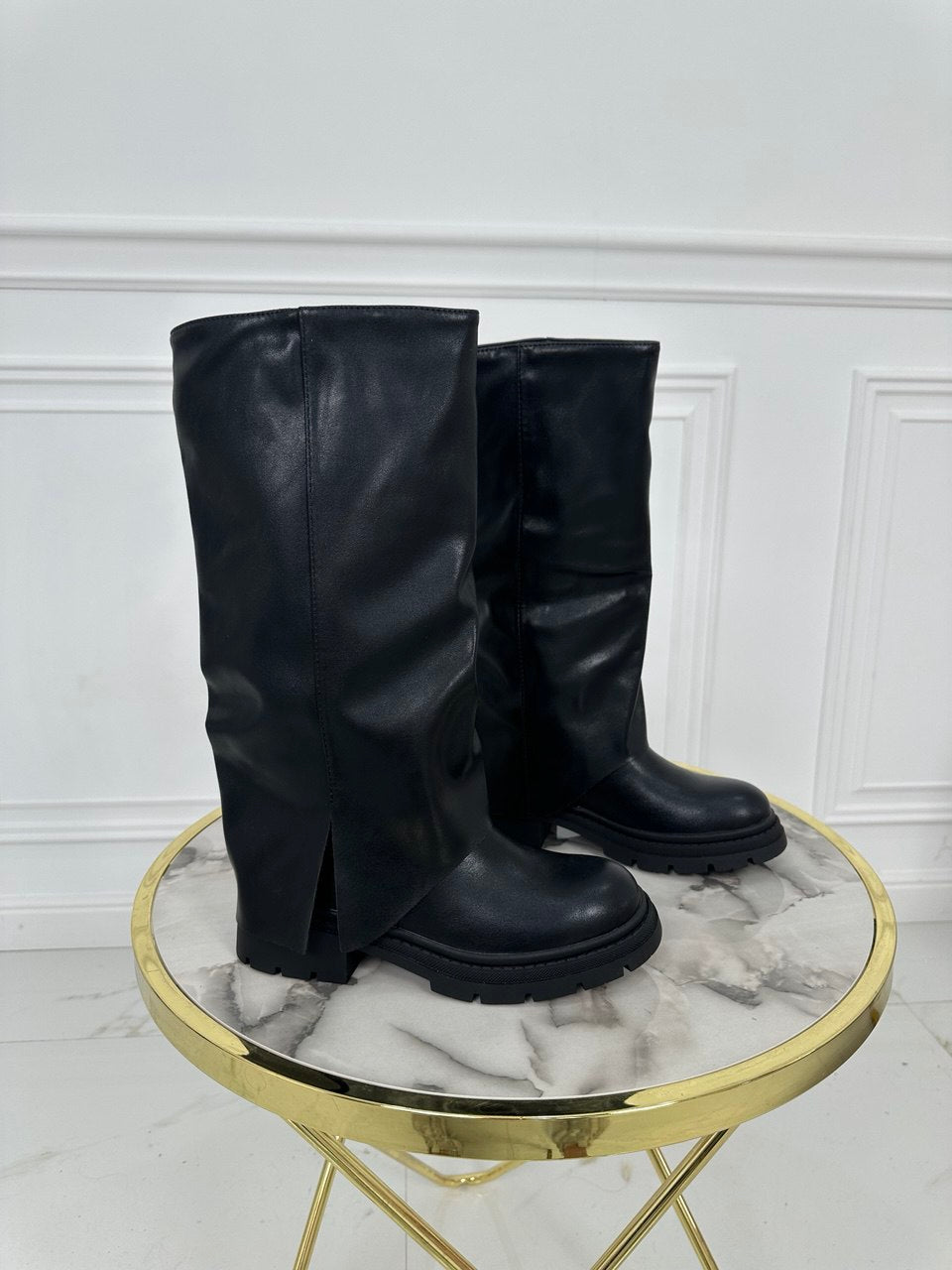 Stivale in ecopelle alto di gamba, con risvolto sul gambale morbidissimo, tacco in gomma