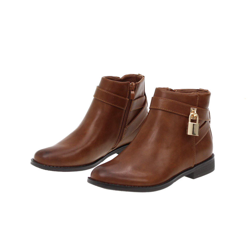 Stivaletti in ecopelle decorati con lucchetto laterale , chiusura con cerniera e tacco di 2 cm