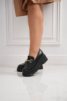 Mocassine in ecopelle con dettaglio in oro sul davanti e tacco in gomma di 5 cm