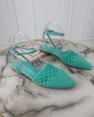 Ballerine a punta in tessuto con interno in ecopelle , chiusura con cinturino e tacchetto di 1 cm