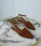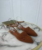 Ballerine a punta in tessuto con interno in ecopelle , chiusura con cinturino e tacchetto di 1 cm