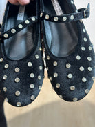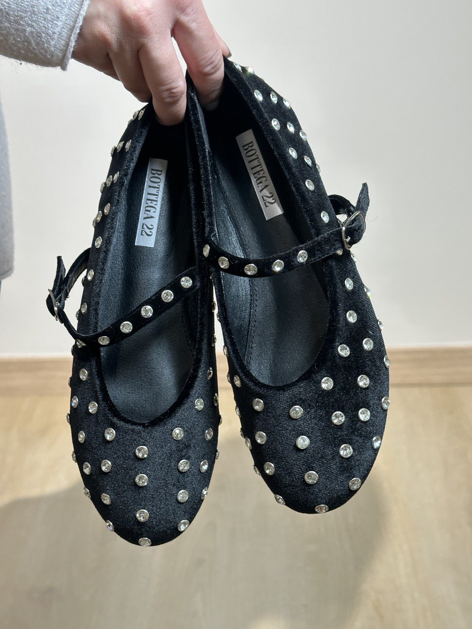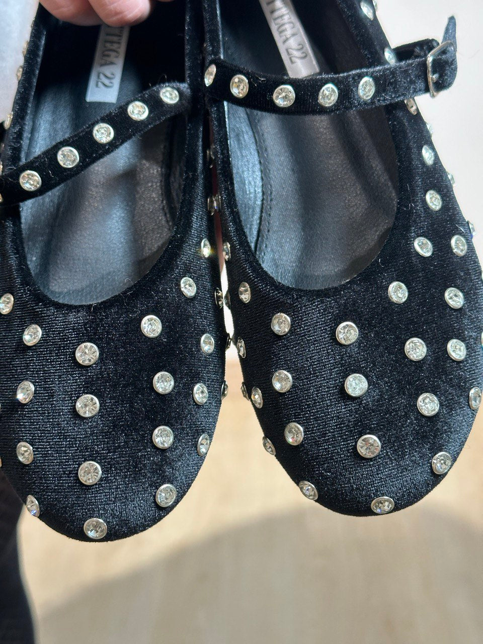 Ballerine in velluto ricoperte interamente di strass , chiusura con cinturino fondo in gomma