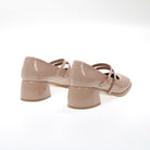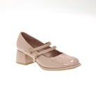 Ballerina in ecopelle lucida , chiusura con fibbiette laterali e tacco largo di 4 cm