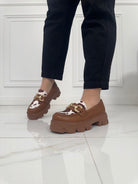 Mocassine in ecopelle con dettaglio in oro sul davanti , fondo in gomma di 3 cm