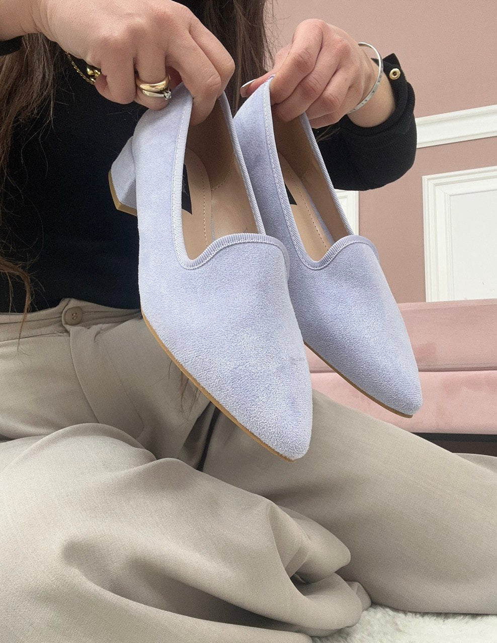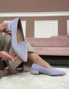 Ballerina a punta in camoscio con interno morbido e tacchetto di 3 cm