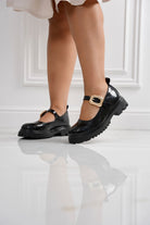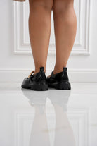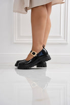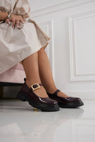 Mocassine in ecopelle , chiusura con cinturino laterale regolabile e fondo in gomma di 3 cm