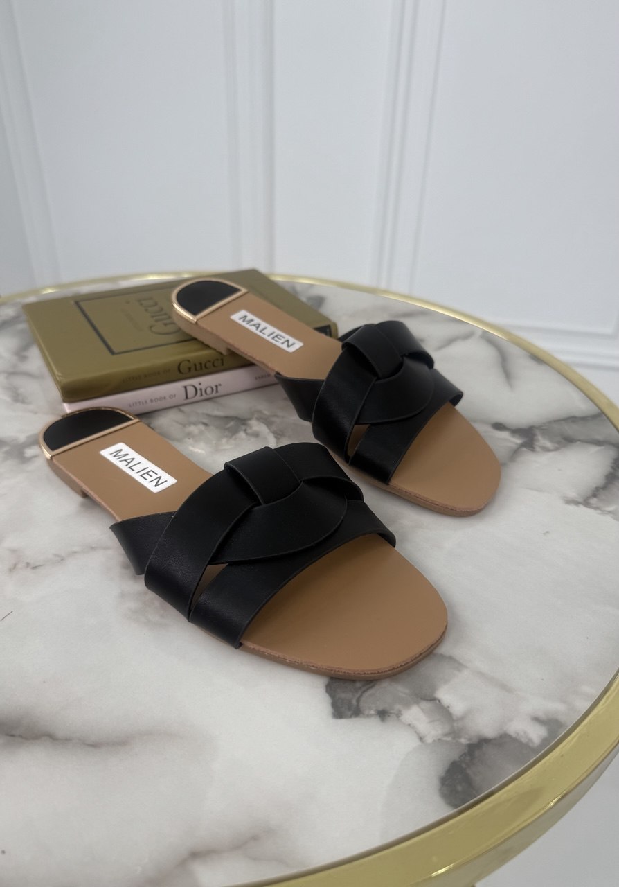 Pantofolina in ecopelle con fascia larga , aperta sul retro con fondo in gomma