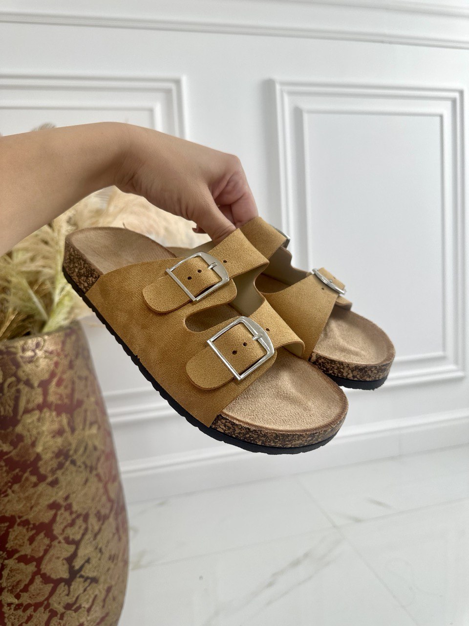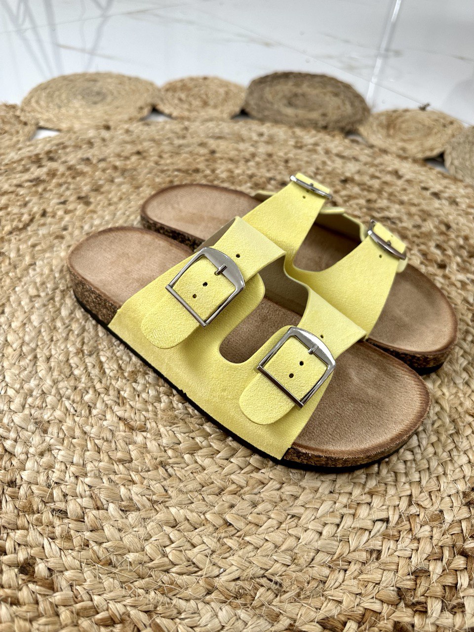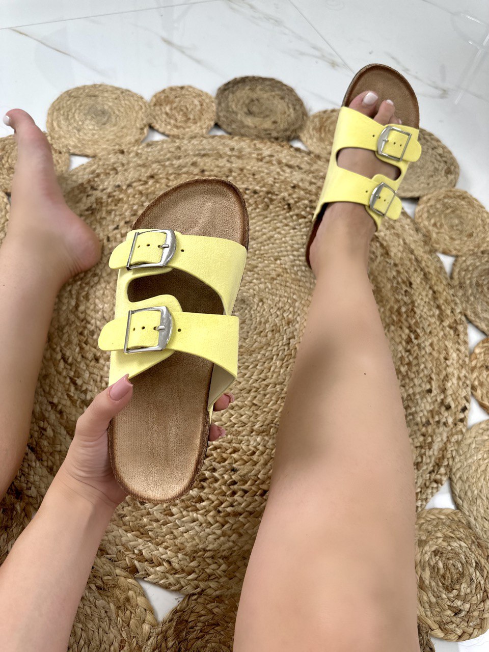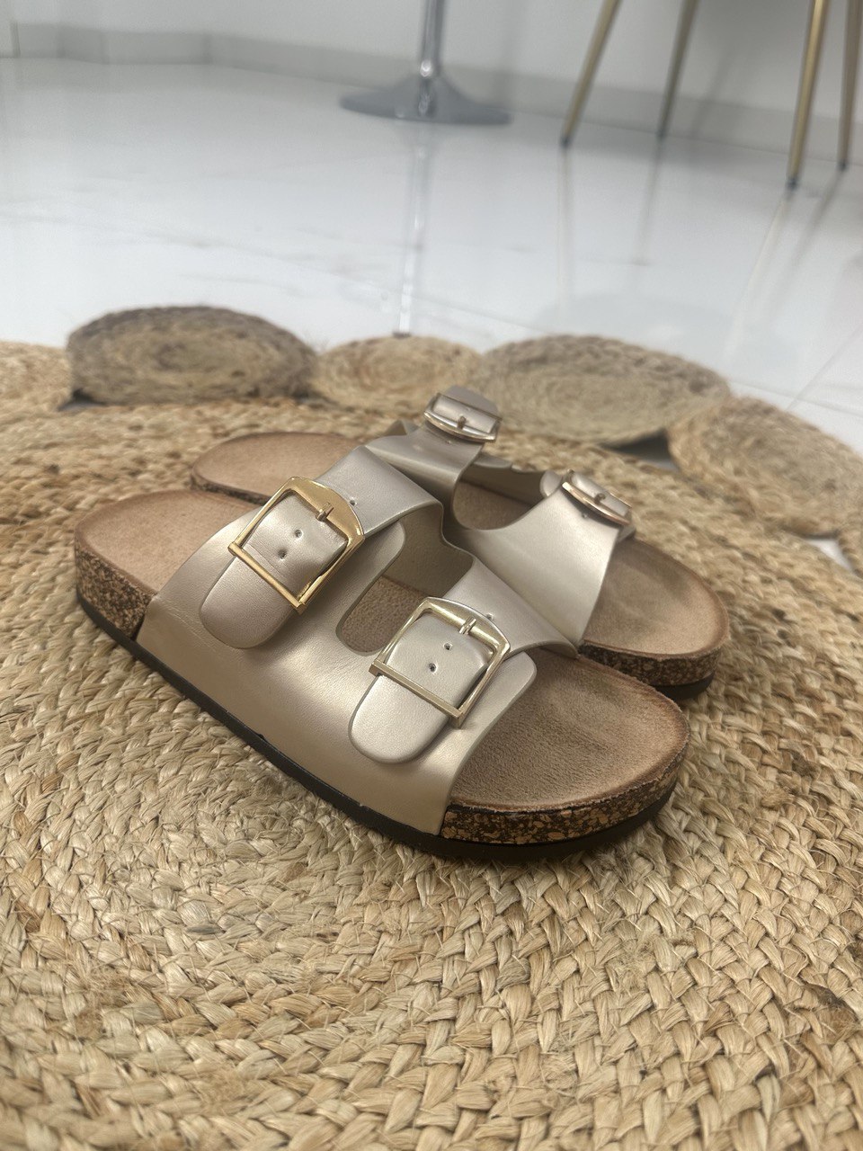 Pantofolina con doppia fibbia laterale regolabile e fondo in gomma