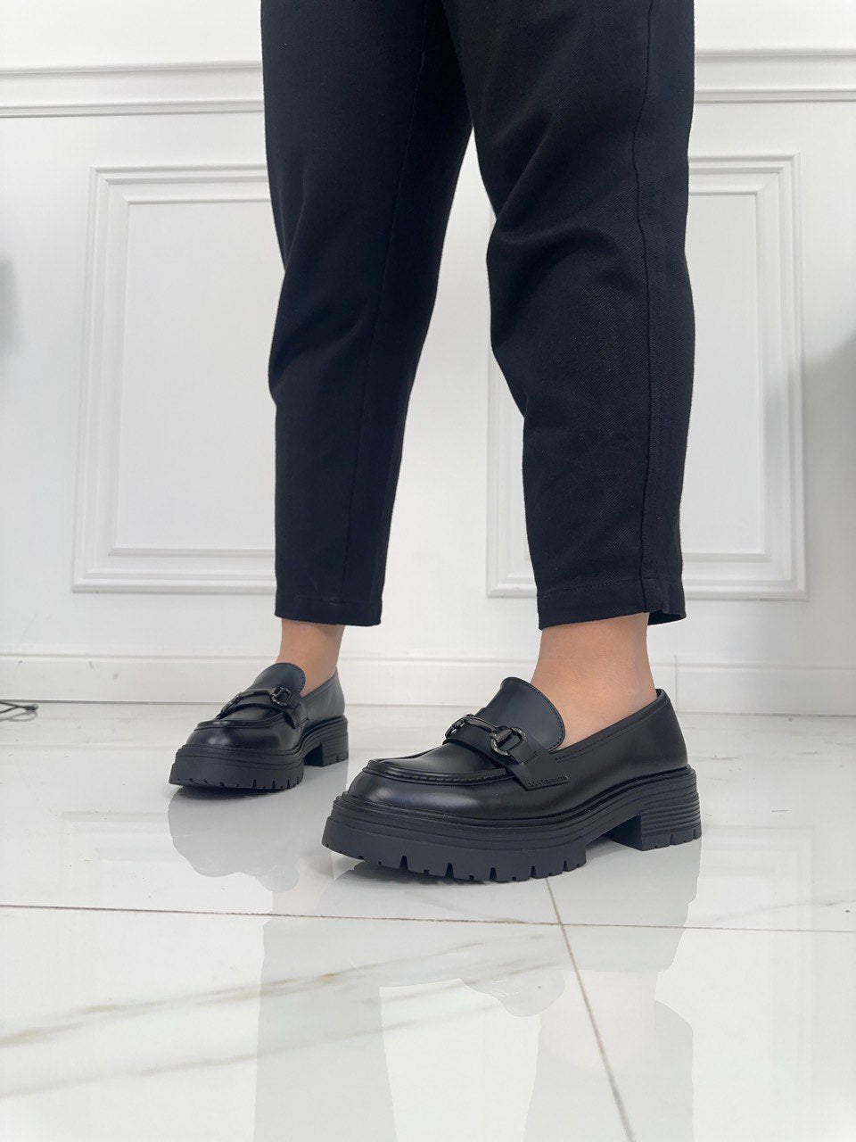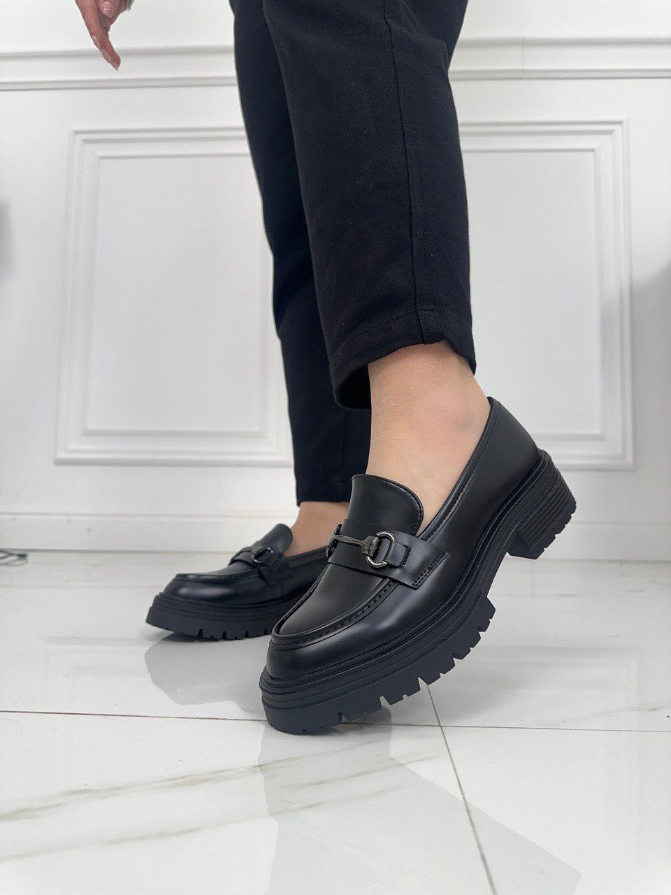 Mocassine in ecopelle con dettaglio in argento sul davanti e fondo in gomma di 3 cm
