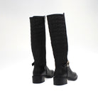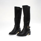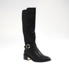 Stivale in ecopelle e tessuto , con gambale alto e fibbia laterale , chiusura con cerniera e tacco largo di 4 cm