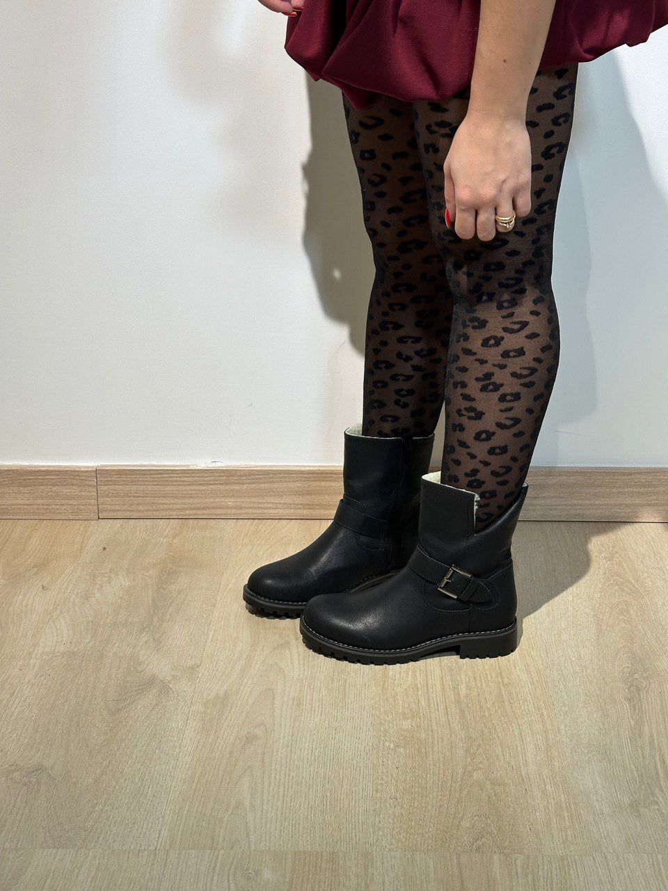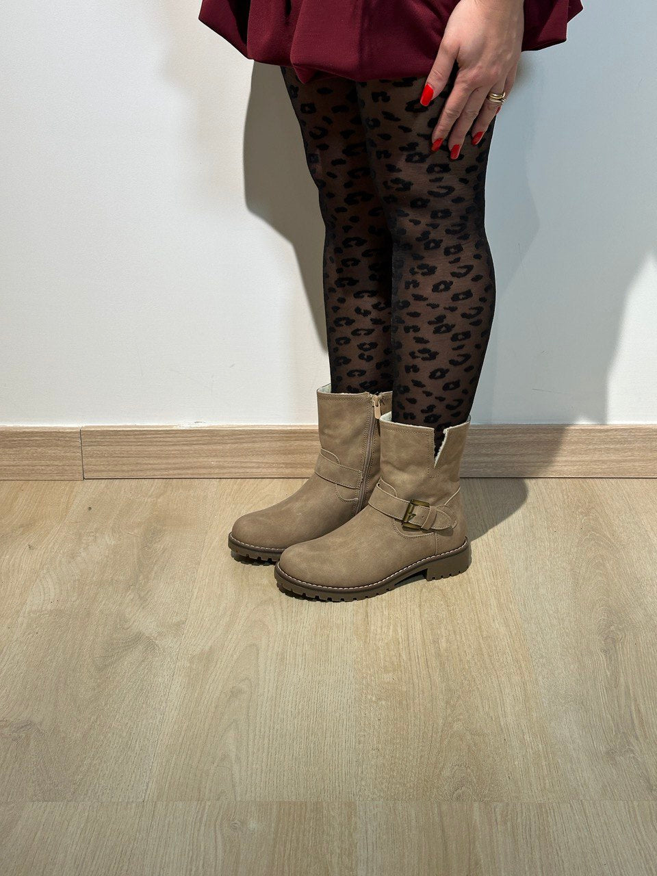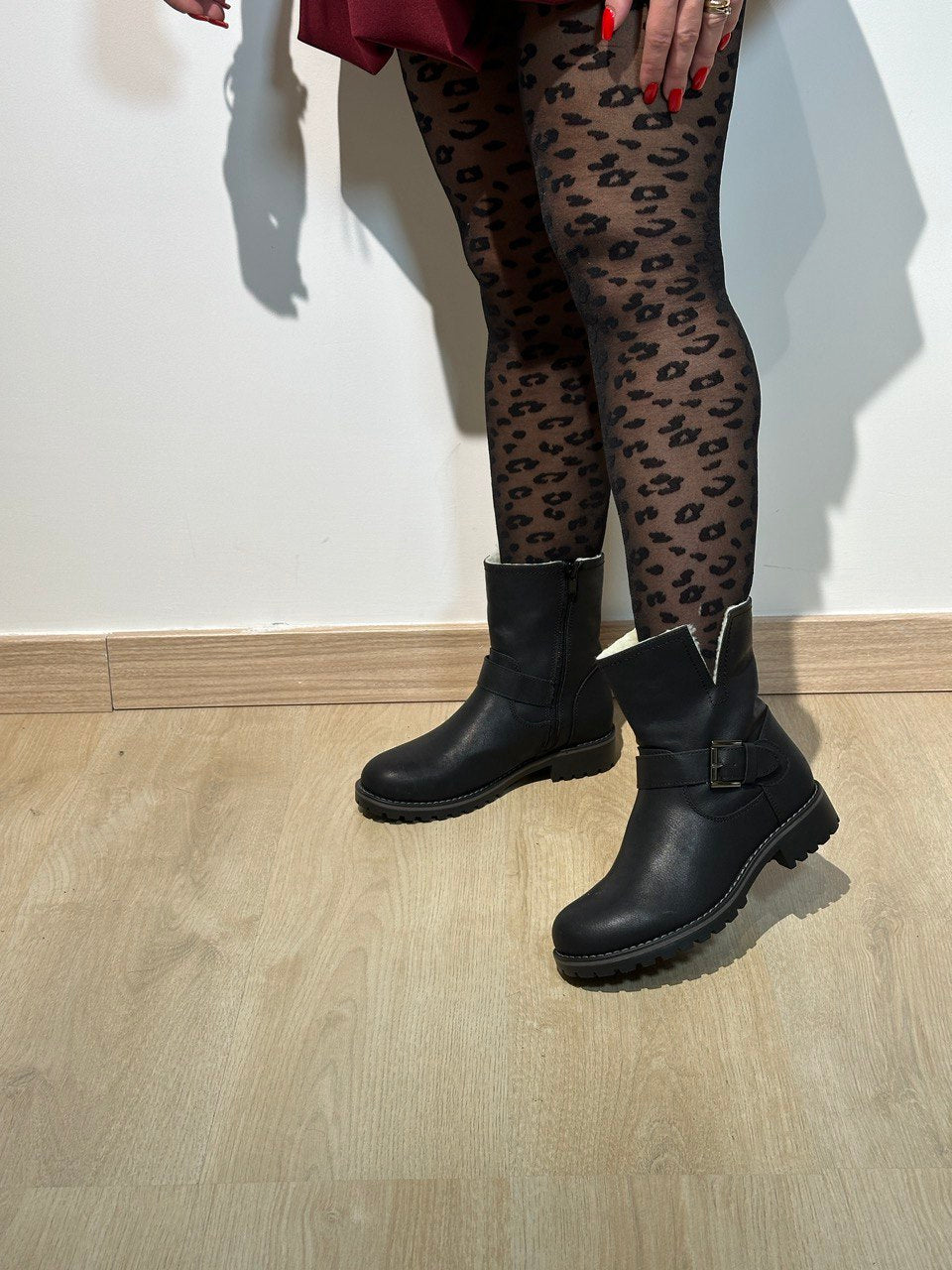 Stivaletti in ecopelle con interno in morbida lana , fibbia laterale , chiusura con cerniera e fondo in gomma di 3 cm