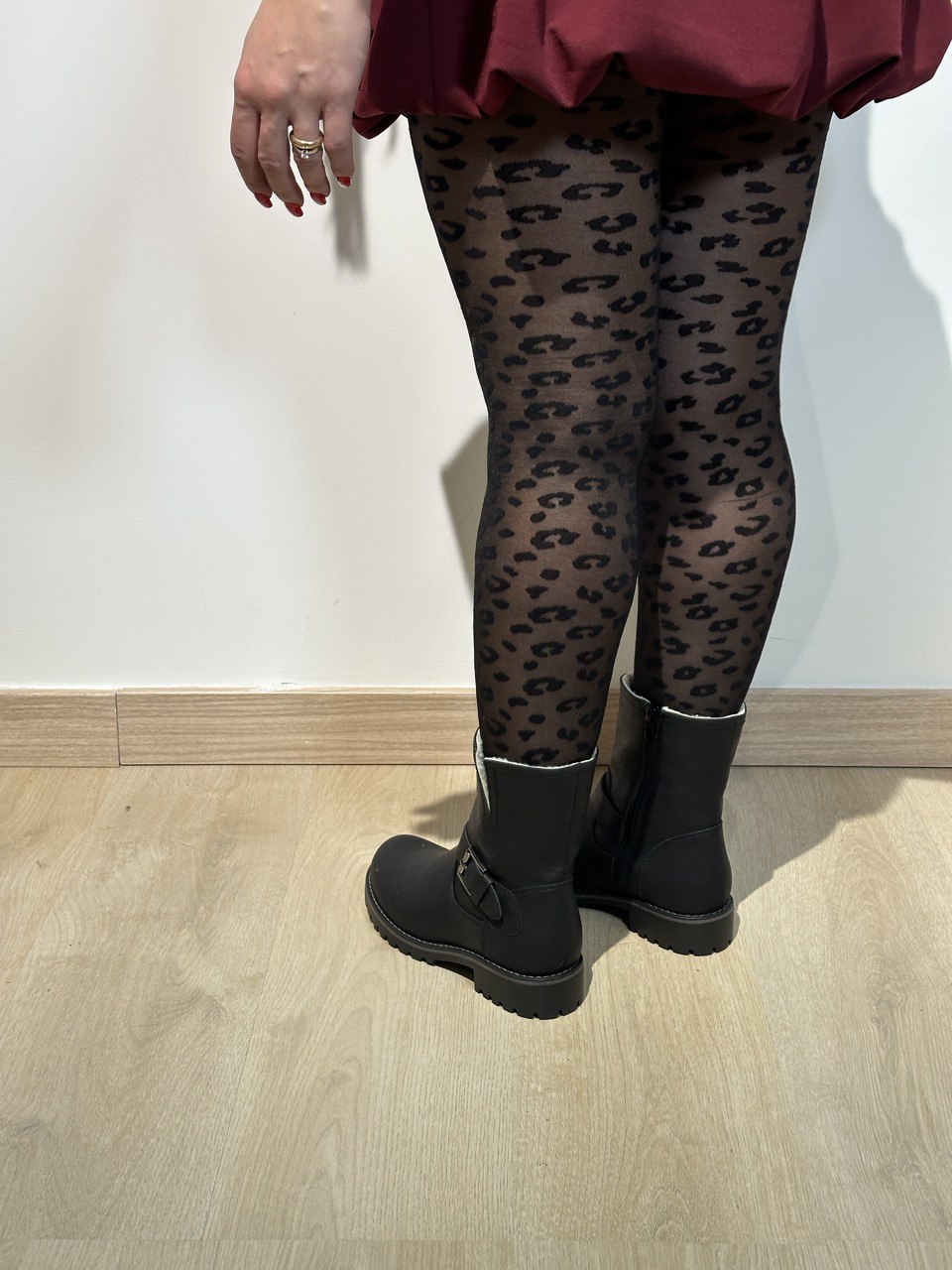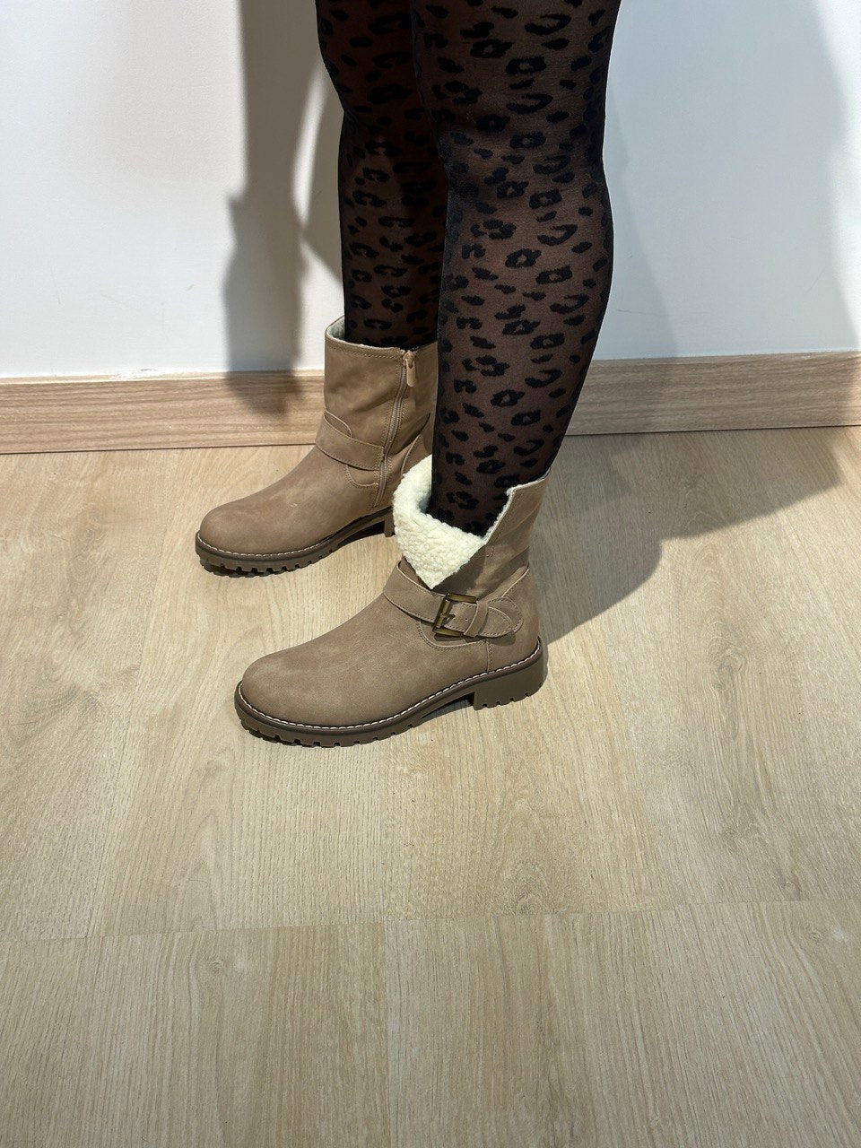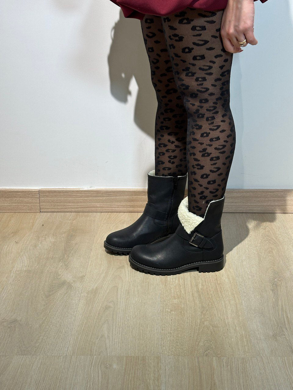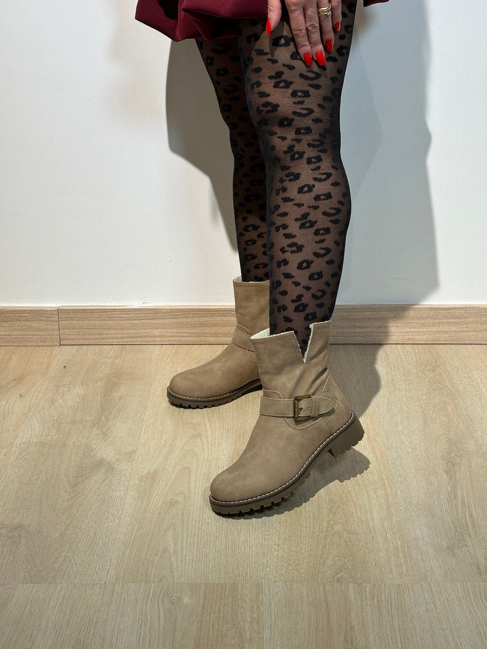 Stivaletti in ecopelle con interno in morbida lana , fibbia laterale , chiusura con cerniera e fondo in gomma di 3 cm