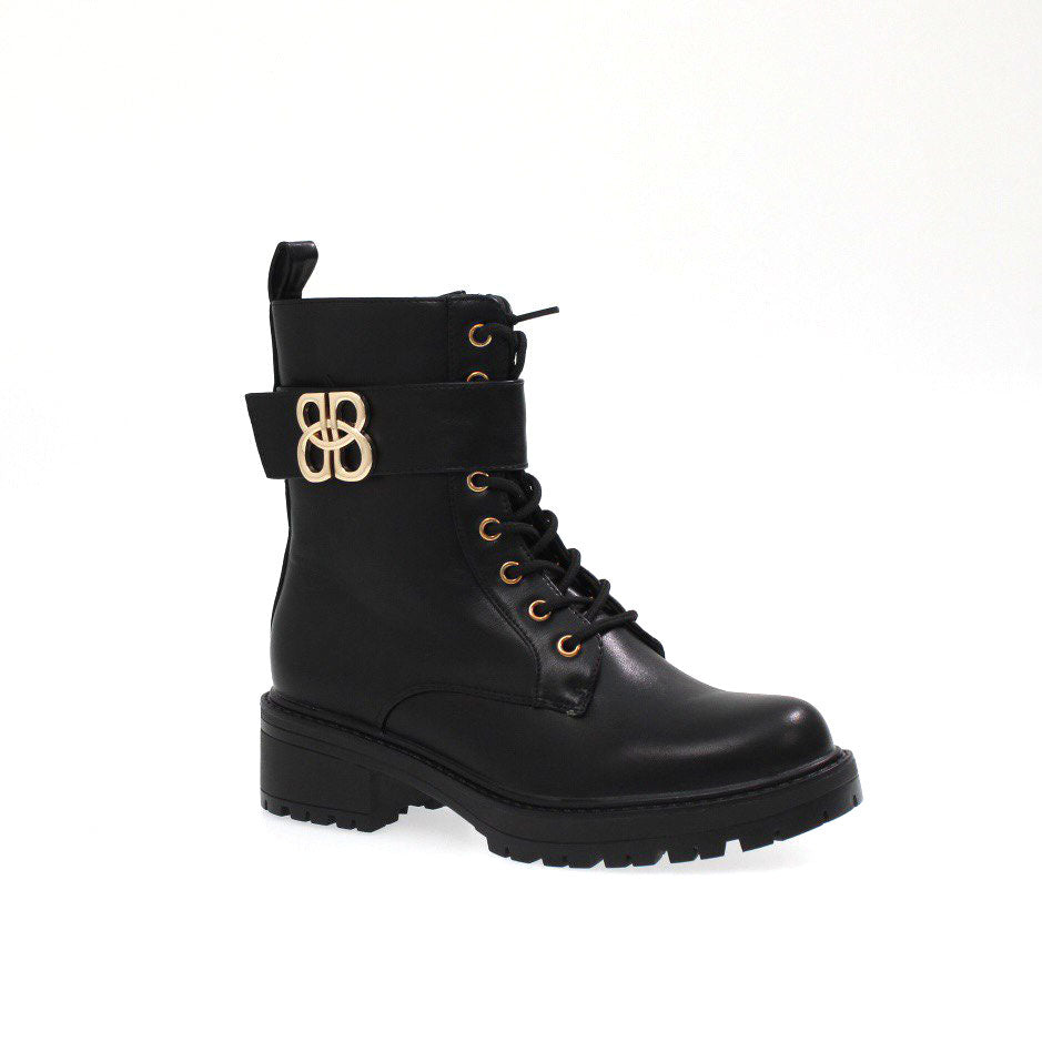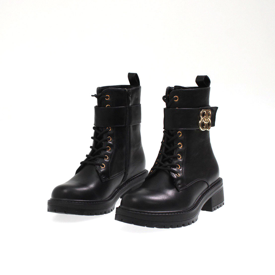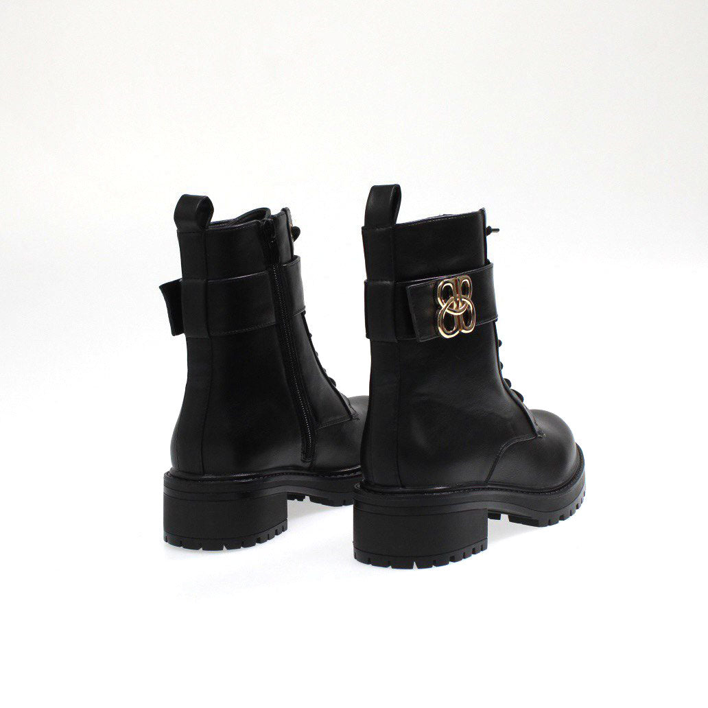 Anfibi in ecopelle , chiusura con cerniera e lacci , dettaglio dorato laterale e fondo in gomma di 3 cm