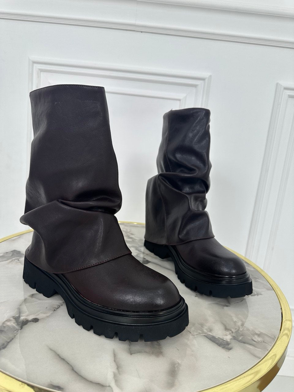 Stivaletto in ecopelle con tacco in gomma, para alta 3 centimetri. Ha il mezzo gambale con effetto arricciato, super morbido, La chiusura è in cerniera.