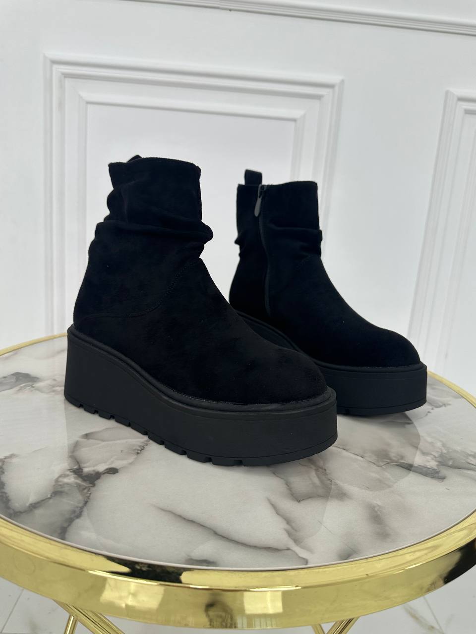 Stivaletto in camoscio con zeppa dritta come fondo, alta 5 centimetri.