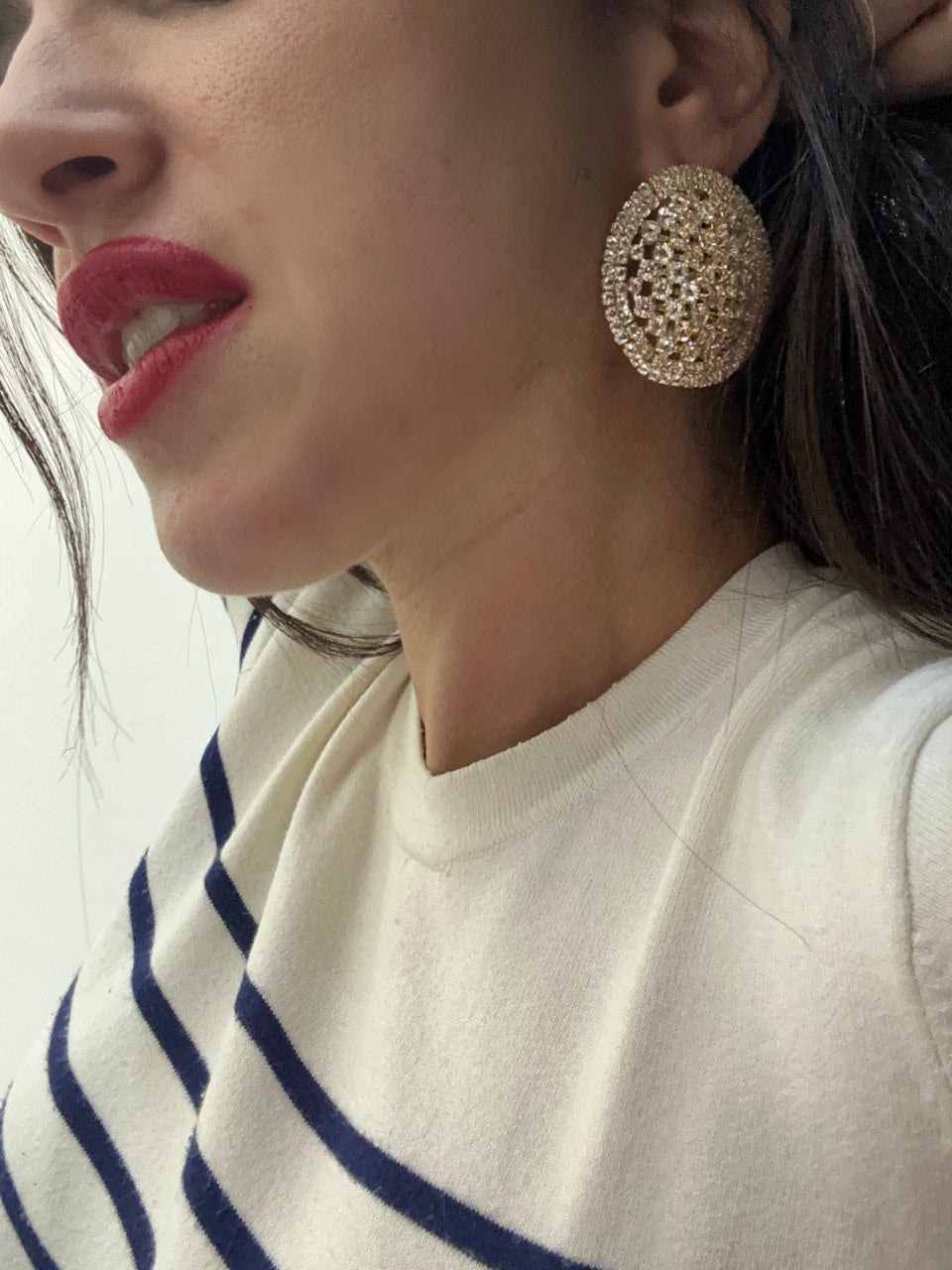 Orecchini ricoperti di strass in acciaio inossidabile con chiusura a foro