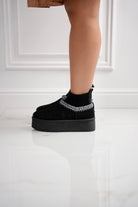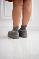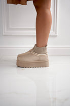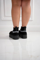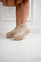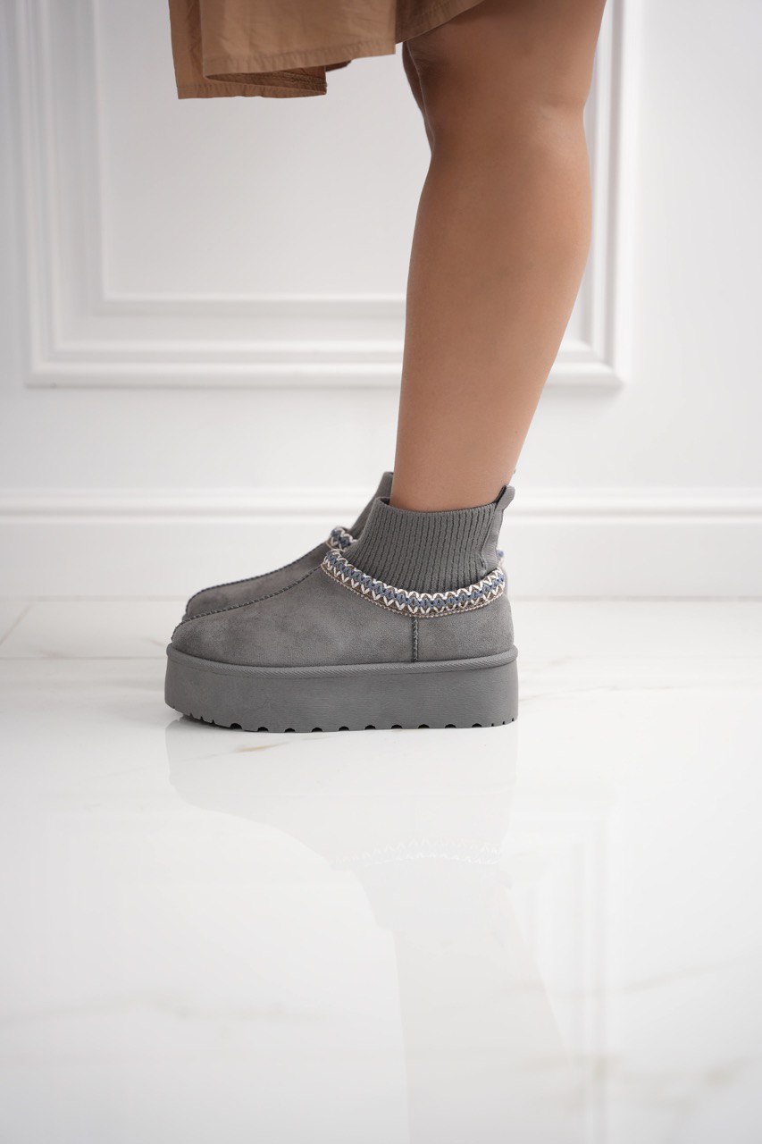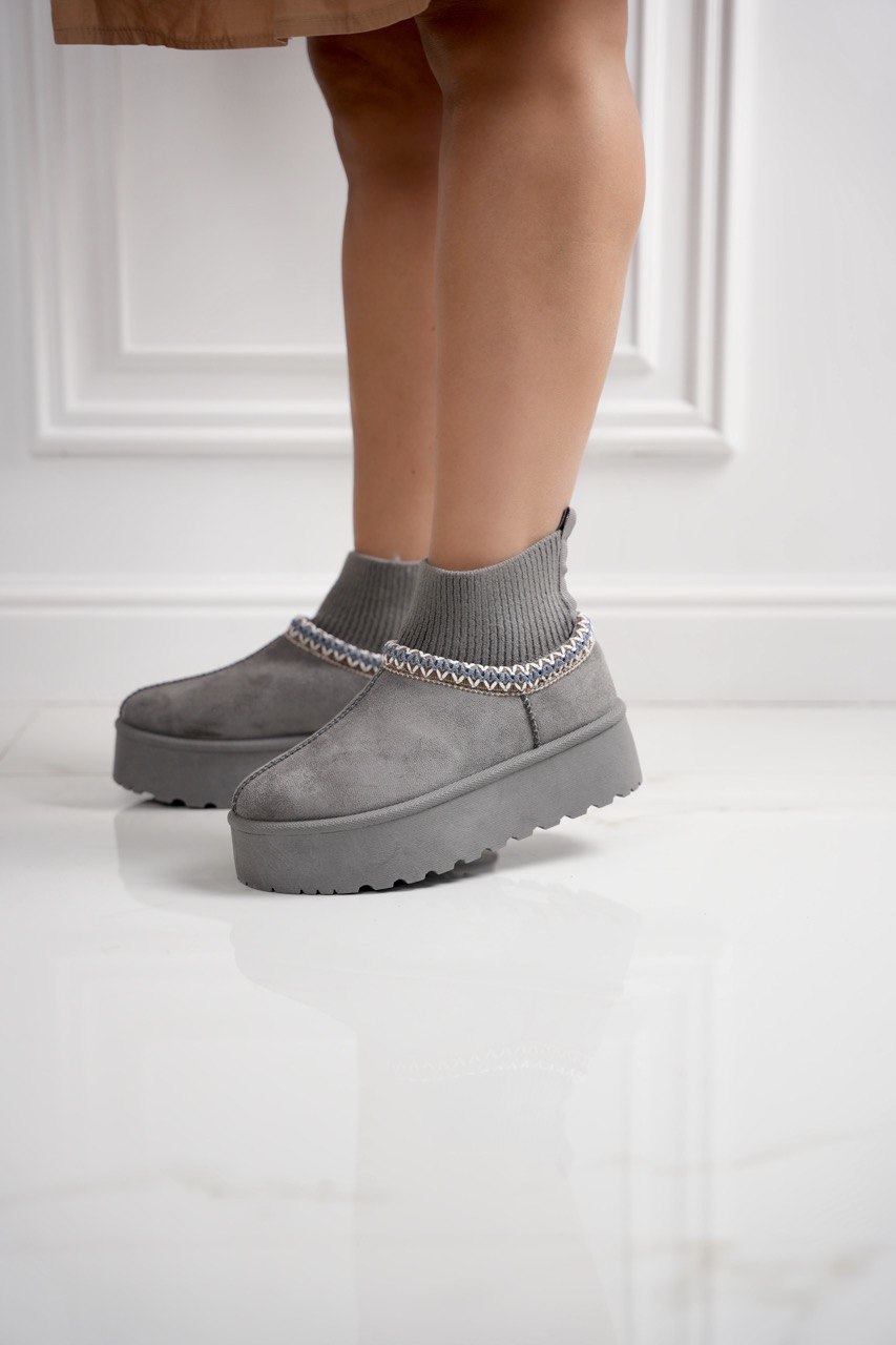 Stivaletti con tomaia in camoscio ed interno in morbido pelo , effetto calzino alla caviglia e fondo in gomma di 4 cm