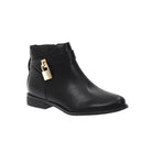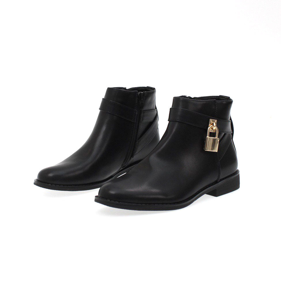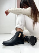 Stivaletti in ecopelle decorati con lucchetto laterale , chiusura con cerniera e tacco di 2 cm
