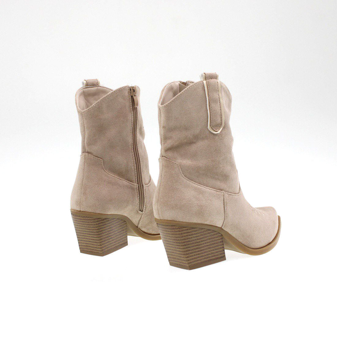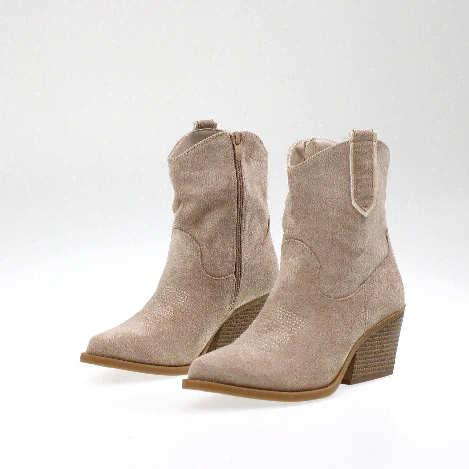 Camperos a punta in camoscio , chiusura con cerniera laterale e tacco largo di 6 cm