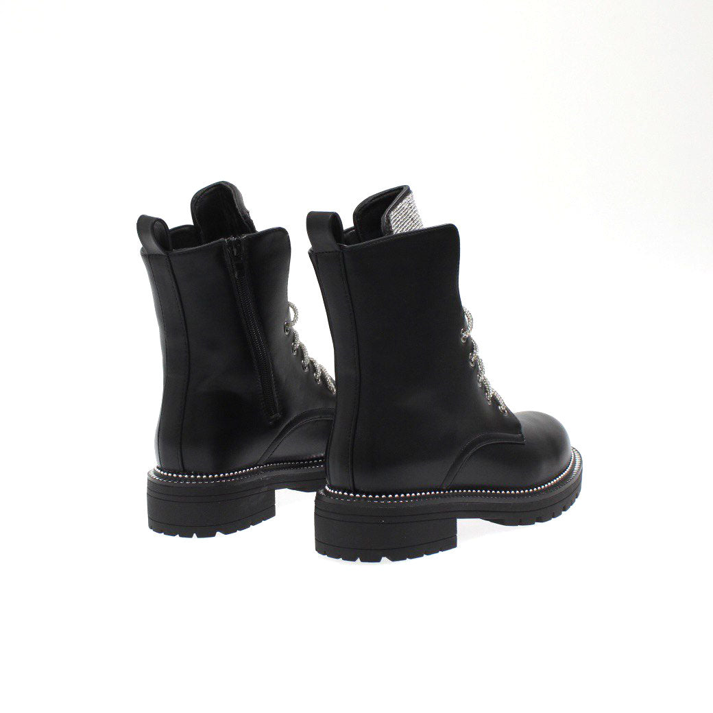 Anfibi in ecopelle decorati con strass , chiusura con lacci e cerniera e fondo di 2 cm
