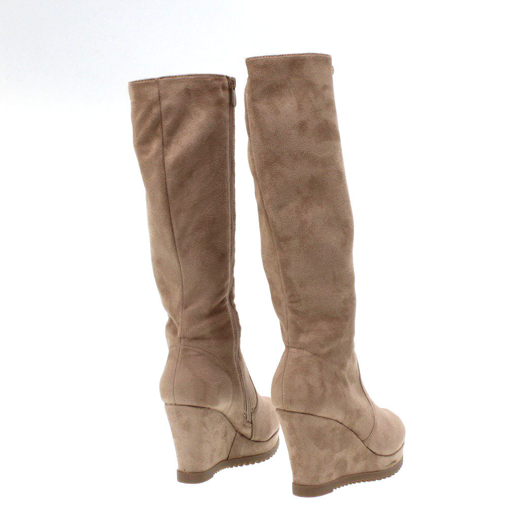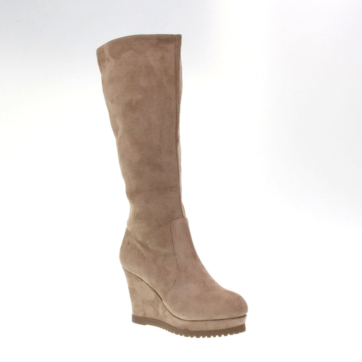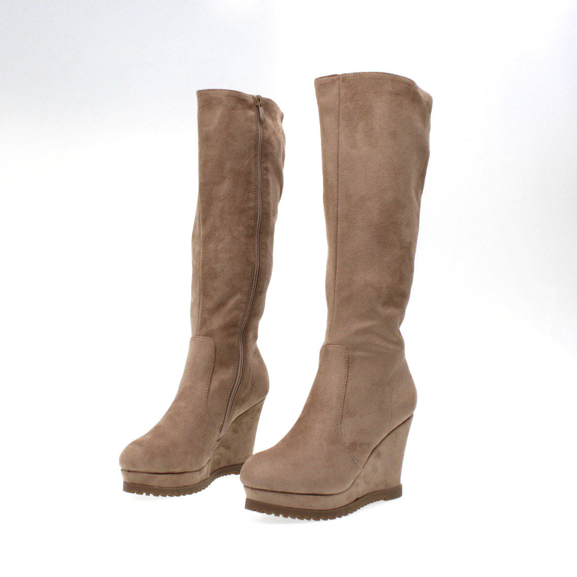 Stivale in camoscio , con gambale alto , chiusura con cerniera laterale e zeppa di 9 cm