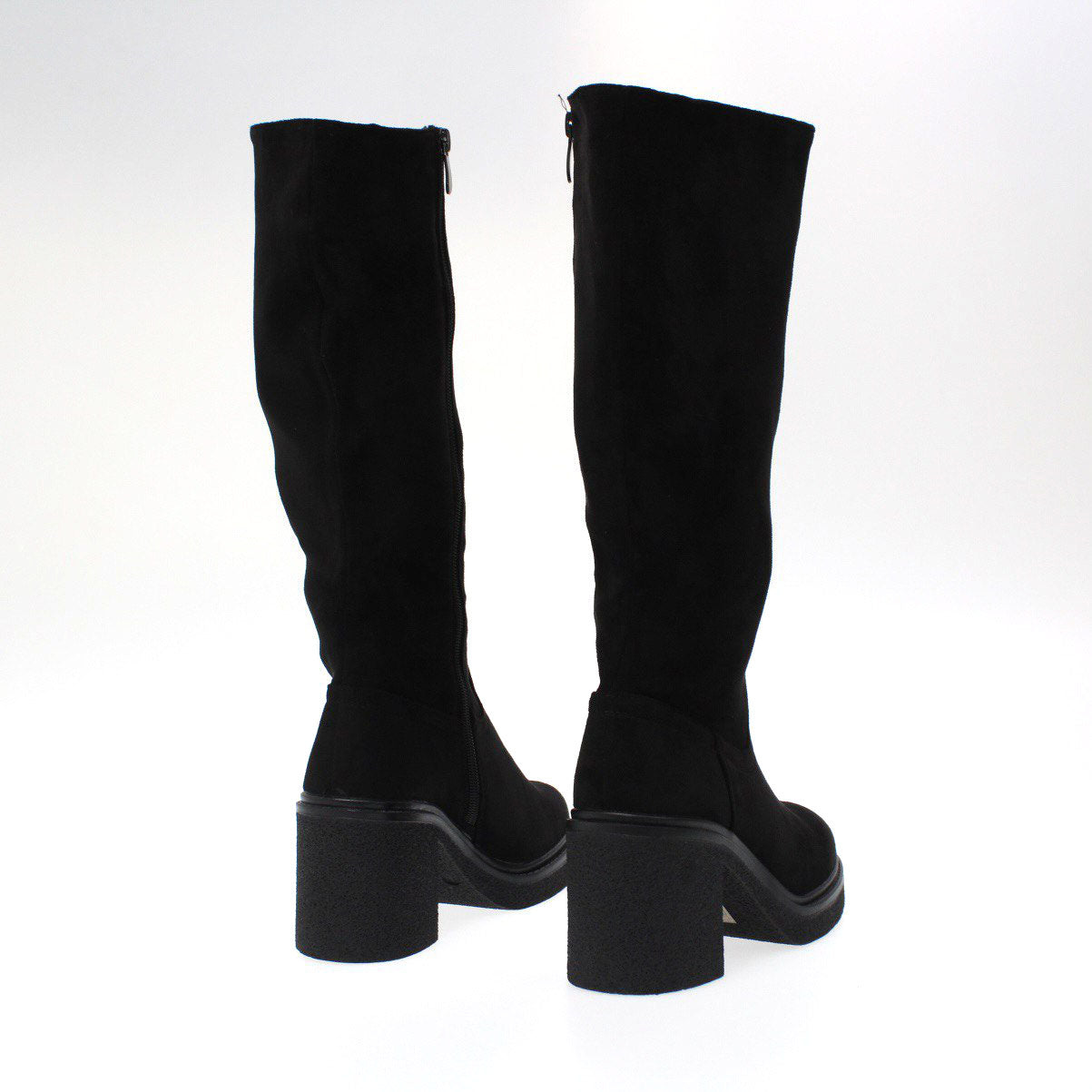 Stivale in camoscio , con gambale alto , chiusura con cerniera laterale e tacco largo di 7 cm