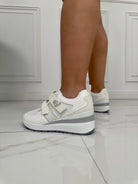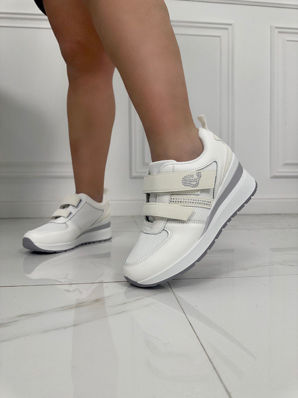 Scarpetta in ecopelle , chiusura con doppio strappo , rialzo interno fondo in gomma di 4 cm