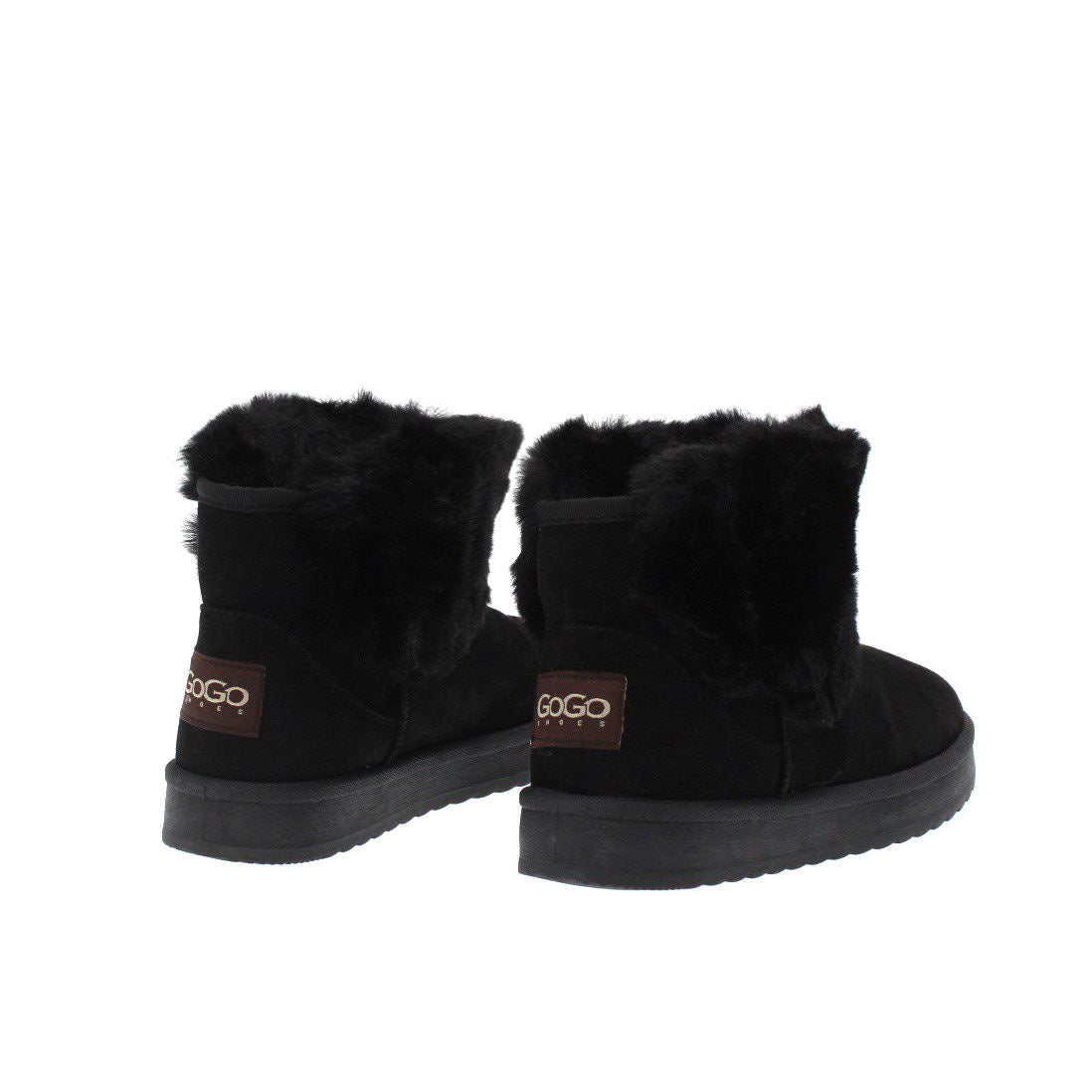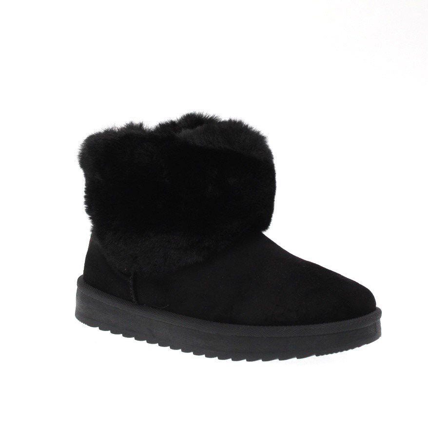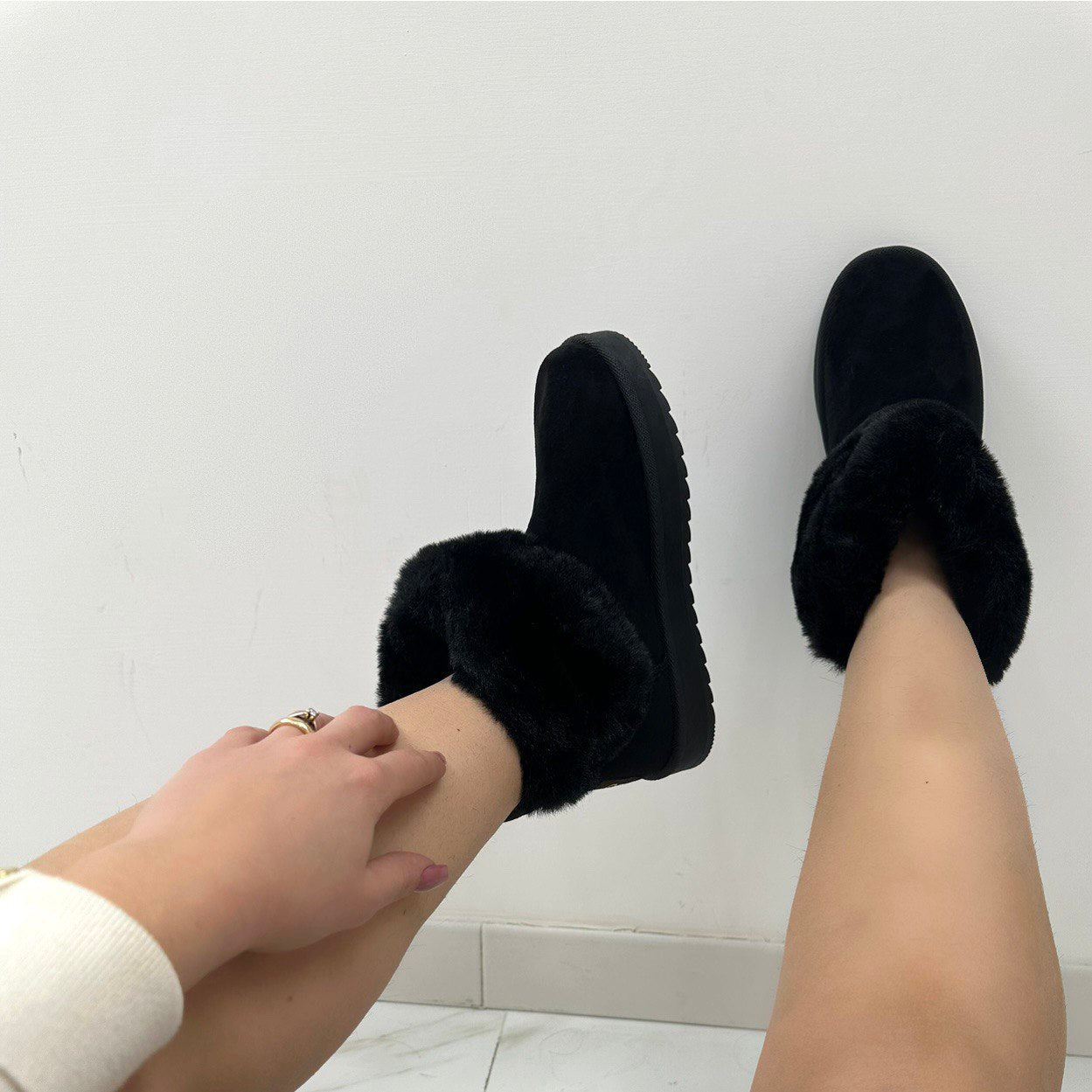 Stivaletti in camoscio con risolto in morbido pelo e fondo in gomma di 2 cm