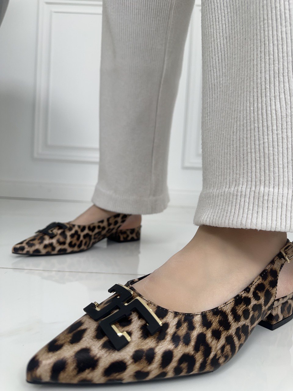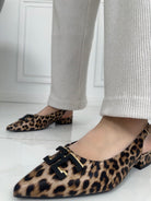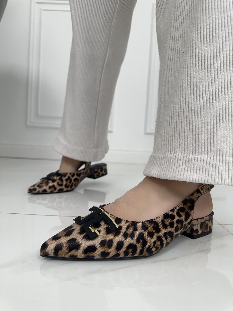 Ballerina a punta in ecopelle con dettaglio sul davanti , aperte sul retro con cinturino regolabile e tacchetto di 2 cm