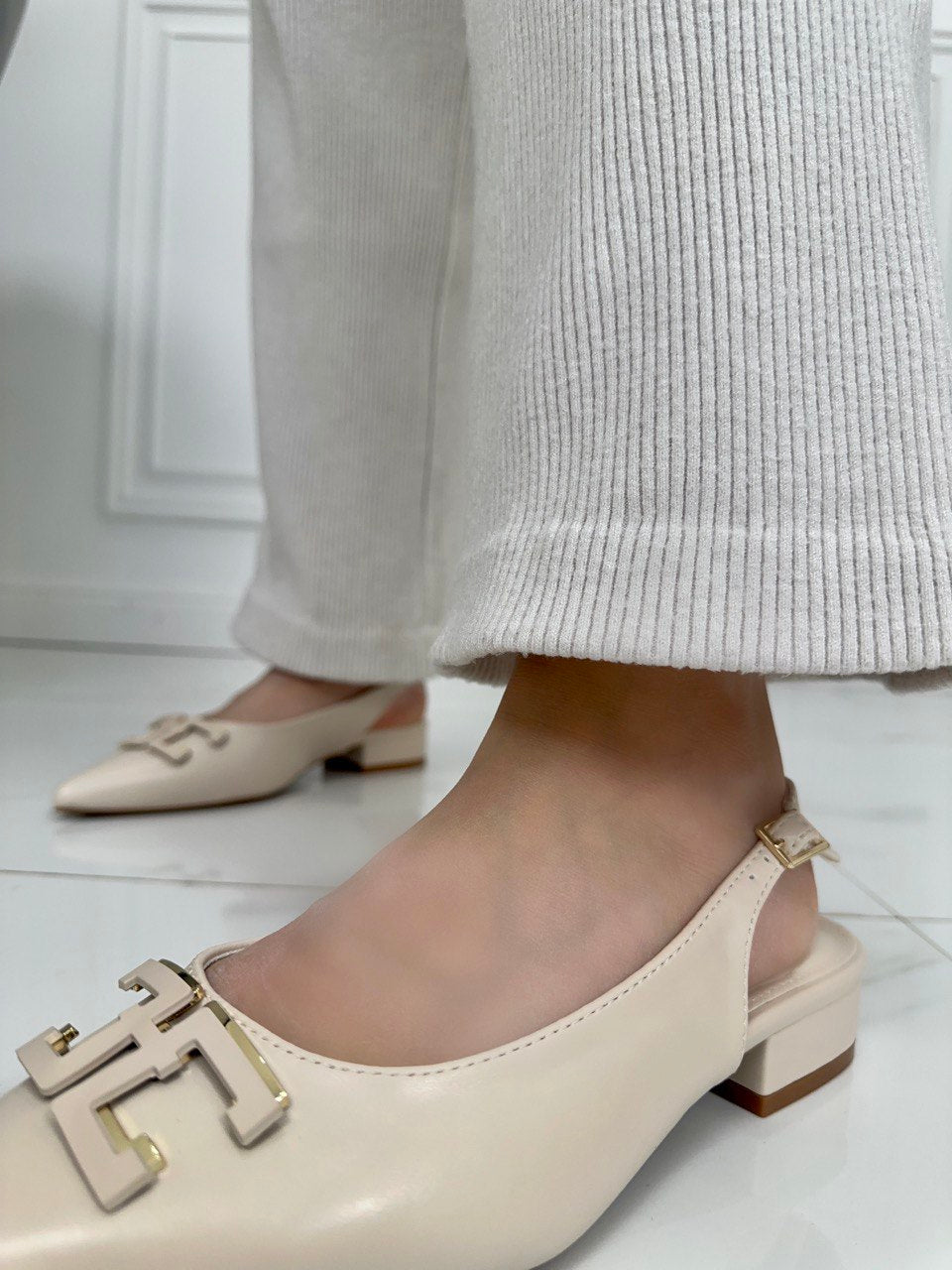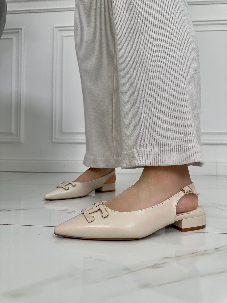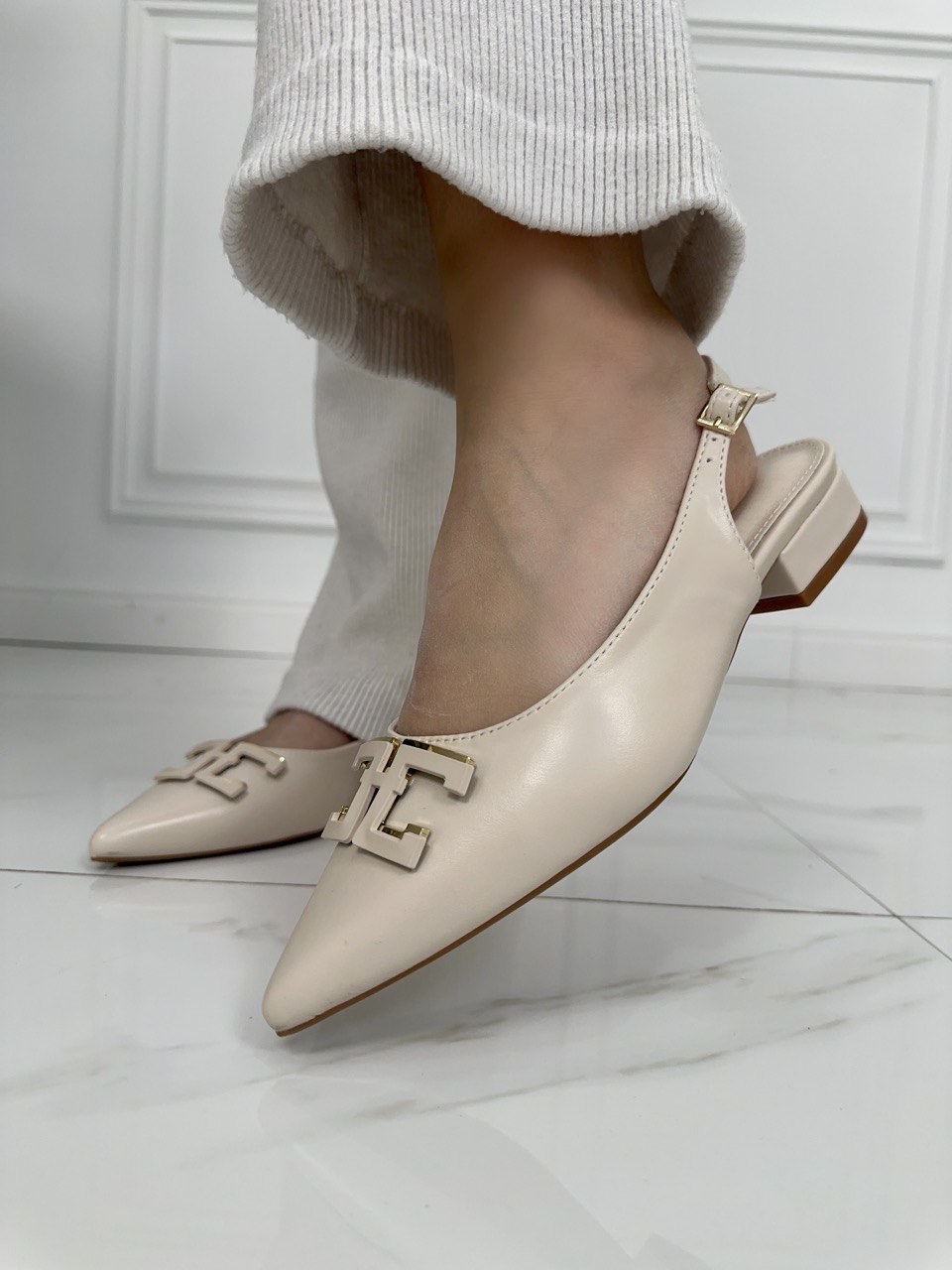 Ballerina a punta in ecopelle con dettaglio sul davanti , aperte sul retro con cinturino regolabile e tacchetto di 2 cm