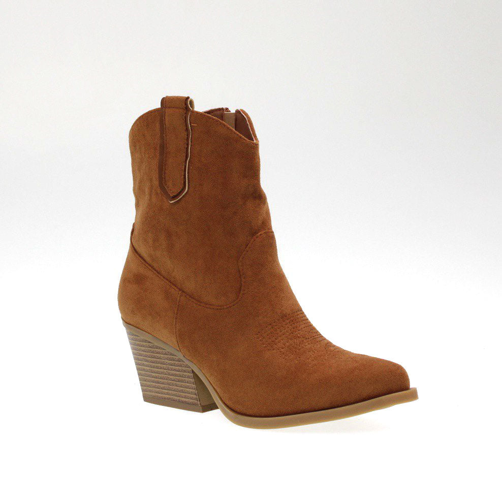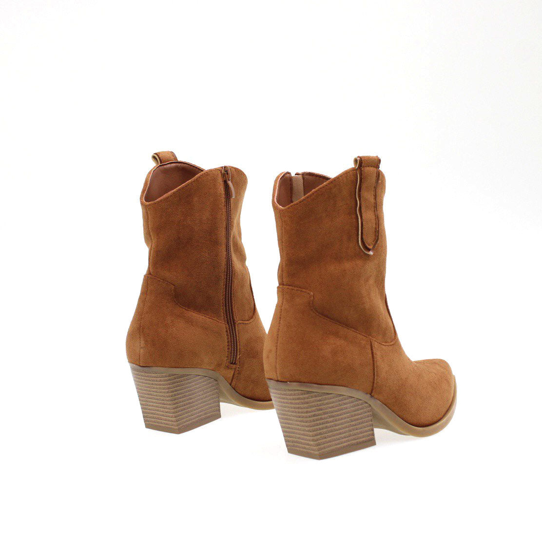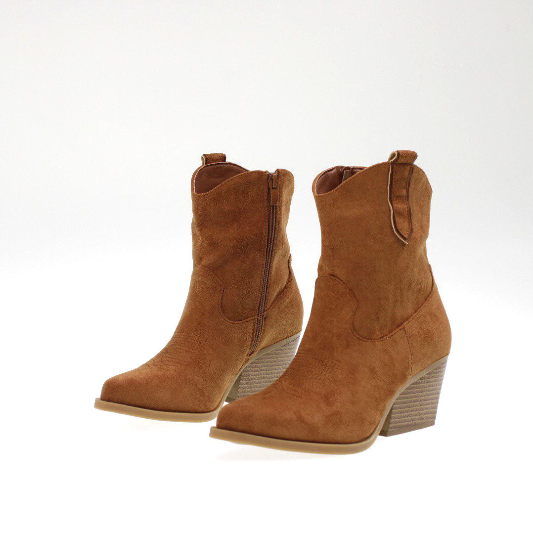 Camperos a punta in camoscio , chiusura con cerniera laterale e tacco largo di 6 cm