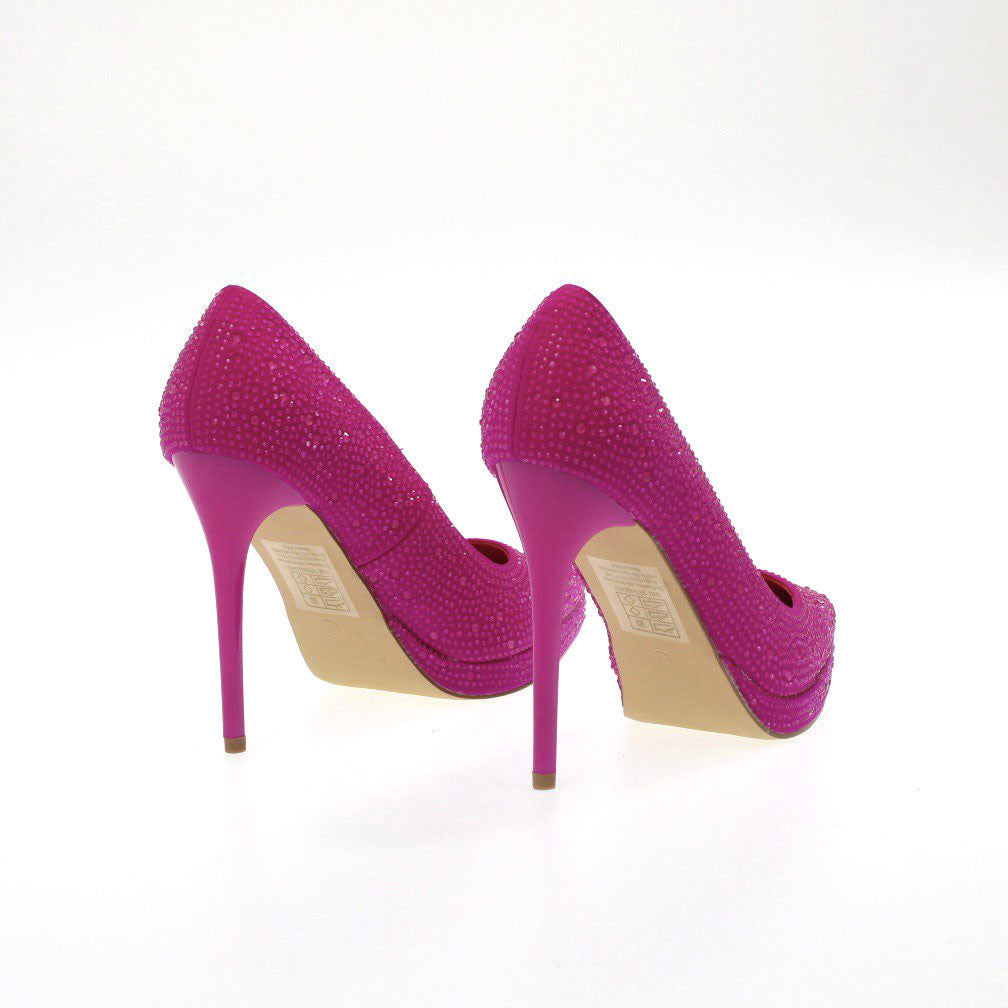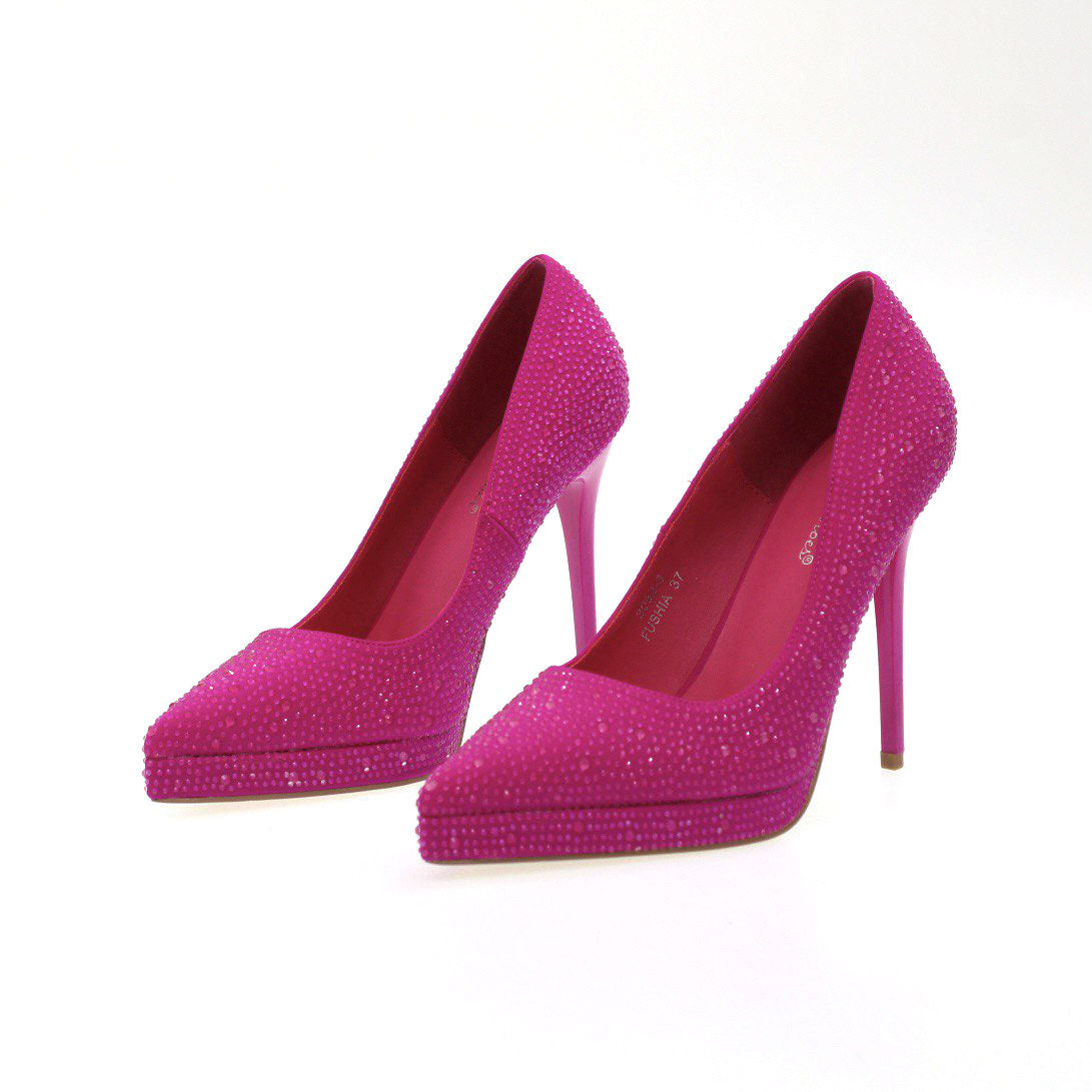 Decolletè in raso decorate interamente con strass , plateau di 2 cm e tacco a spillo di 11 cm
