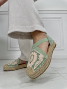 Sandali in tessuto con chiusura elastica , fondo in corda di 2 cm