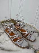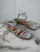Sandali in ecopelle con fasce ad incrocio , chiusura con cinturino e fondo in gomma