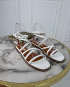 Sandali in ecopelle con fasce ad incrocio , chiusura con cinturino e fondo in gomma