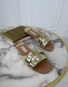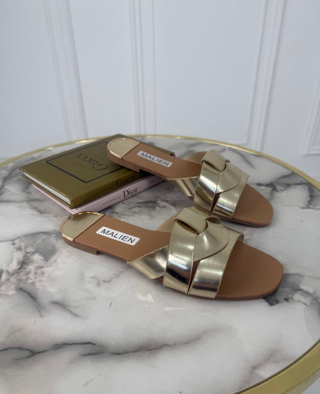 Pantofolina in ecopelle con fascia larga , aperta sul retro con fondo in gomma