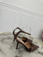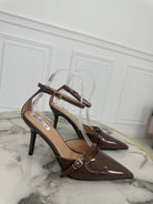 Decolletè a punta in vernice , interno in ecopelle , fibbietta sul davanti , chiusura con cinturino e tacco di 8 cm