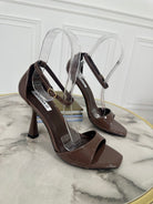 Sandali in vernice con fascia larga , interno in ecopelle , chiusura con cinturino e tacco a rocchetto di 10 cm