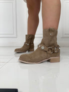 Stivaletti in camoscio con gambale traforato decorati con strass , chiusura con cerniera e tacco di 3 cm