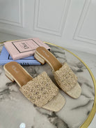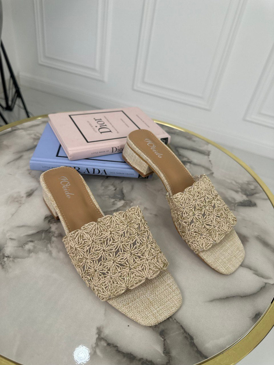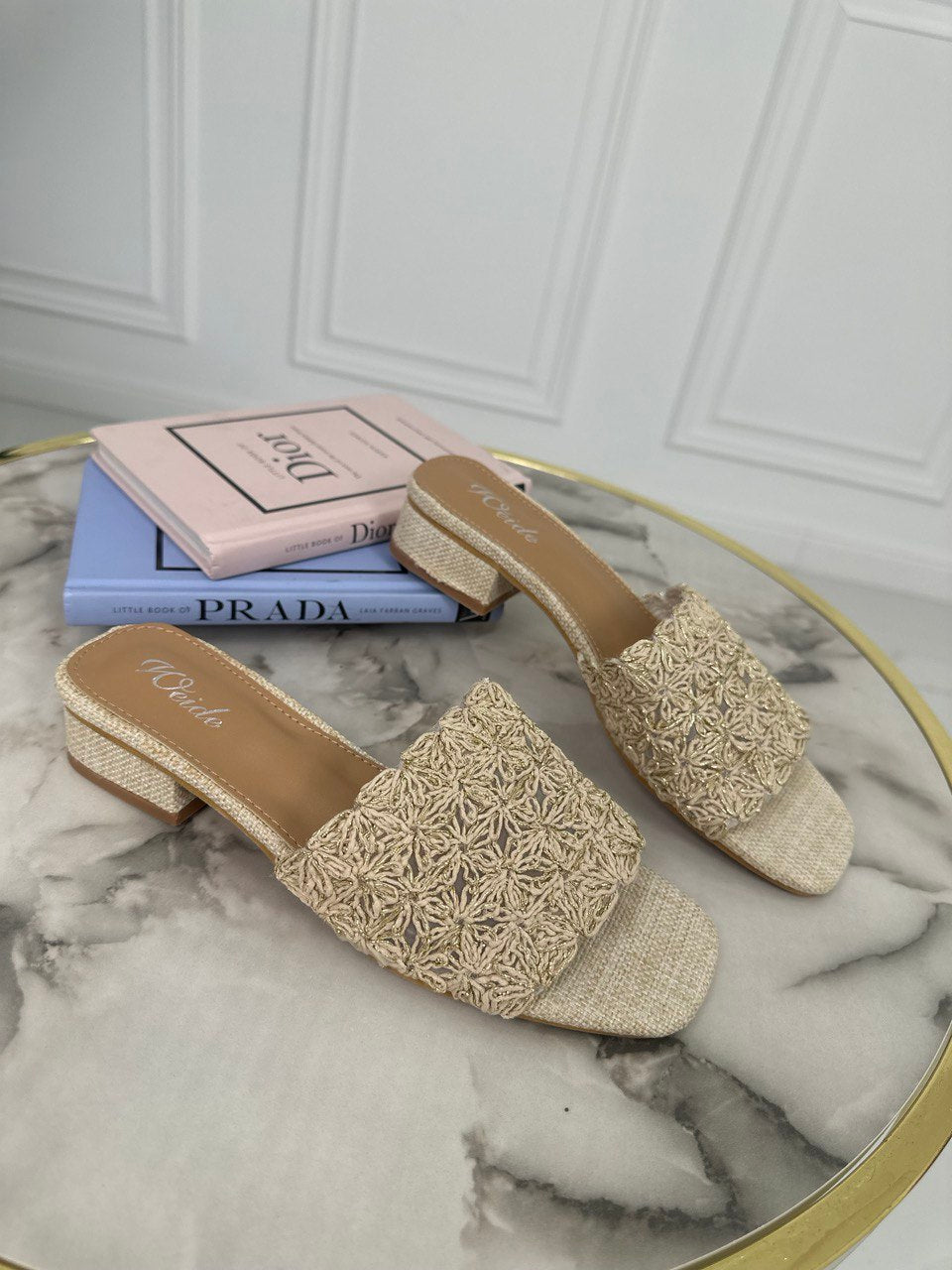 Pantofolina con fascia larga in tessuto , aperte sul retro con tacchetto di 2 cm