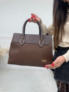 Borsa in ecopelle ,varie tasche interne chiusura con cerniera , manico da braccio e tracolla da spalla removibile.