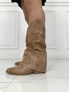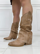 Camperos a punta in ecopelle con risvolto , chiusura con cerniera laterale e tacco largo di 6 cm