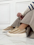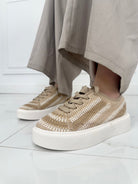 Scarpetta in ecopelle con cuciture bianche e beige , chiusura con lacci e fondo in gomma di 3 cm