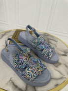 Sandali in rafia con fascia larga sul collo piede , interno in tessuto , chiusura con cinturino e fondo in gomma di 3 cm