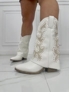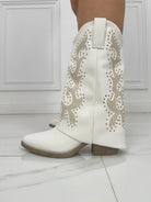 Camperos a punta in ecopelle decorato con borchie laterali , chiusura con cerniera e tacco largo di 5 cm