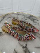Ballerine a punta in ecopelle , chiusura con cinturino regolabile e tacchetto di 2 cm