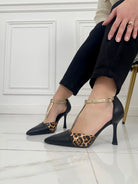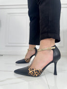 Decolletè a punta con tomaia in ecopelle zebrata , chiusura con cinturino regolabile e tacco di 10 cm