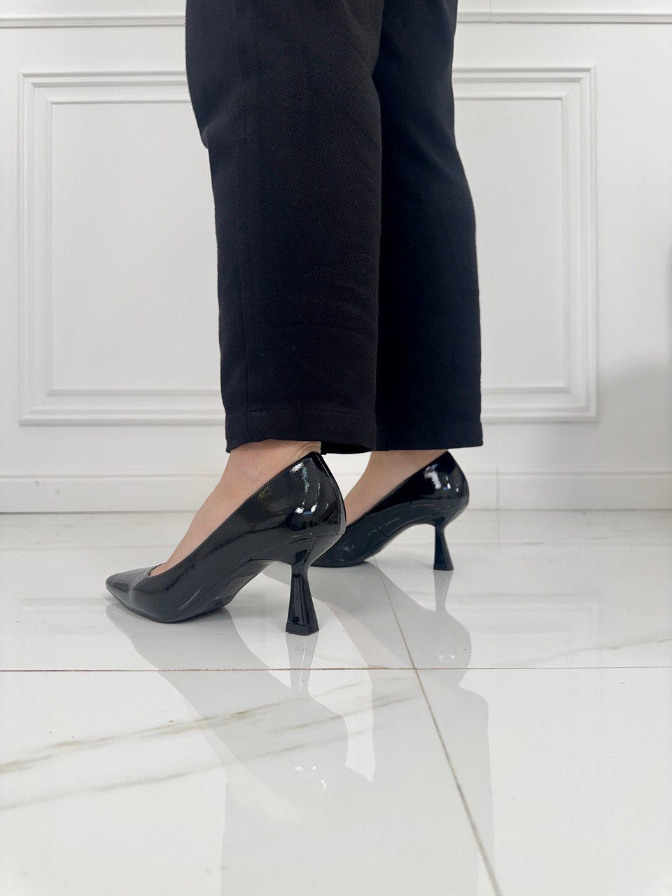 Decolletè a punta in ecopelle con tacco lucido di 7 cm